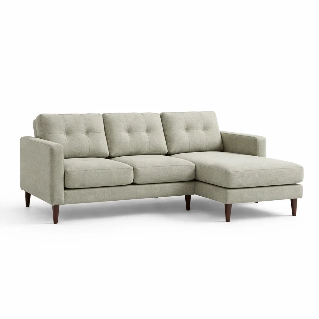 Divano Angolare in Tessuto Beige con Chaise Longue