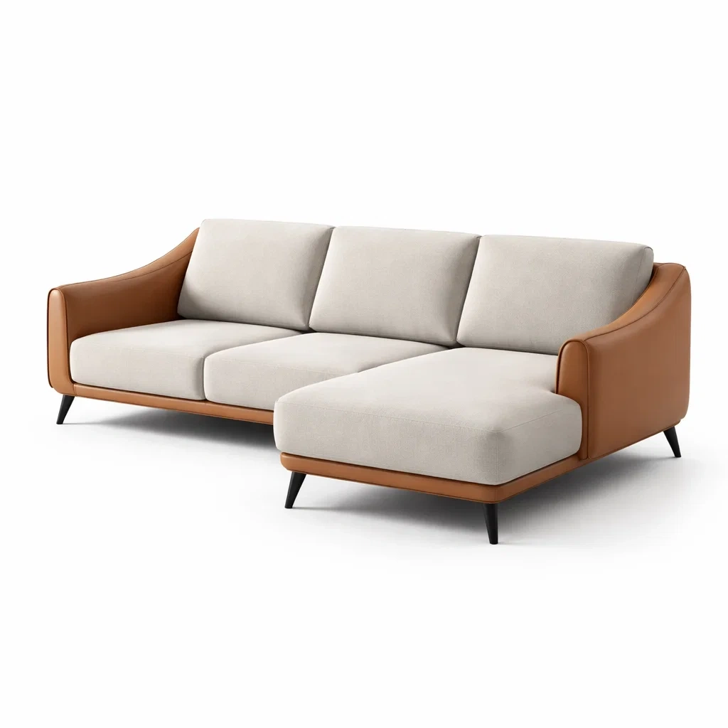 Divano Angolare in Tessuto e Pelle Sintetica Beige e Marrone