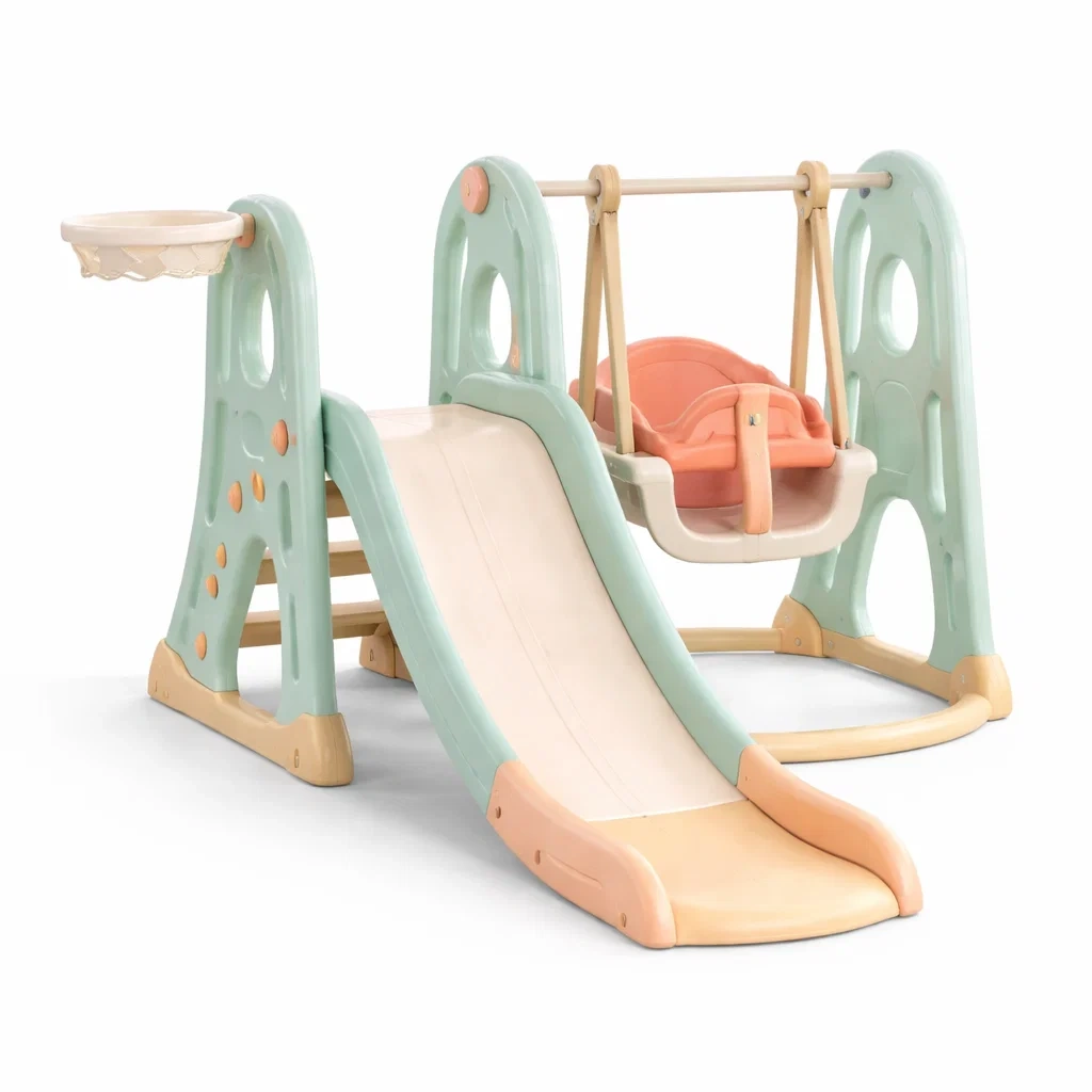 Attrezzatura da gioco per bambini in Plastica Verde e Arancione con Scivolo Altalena e Canestro