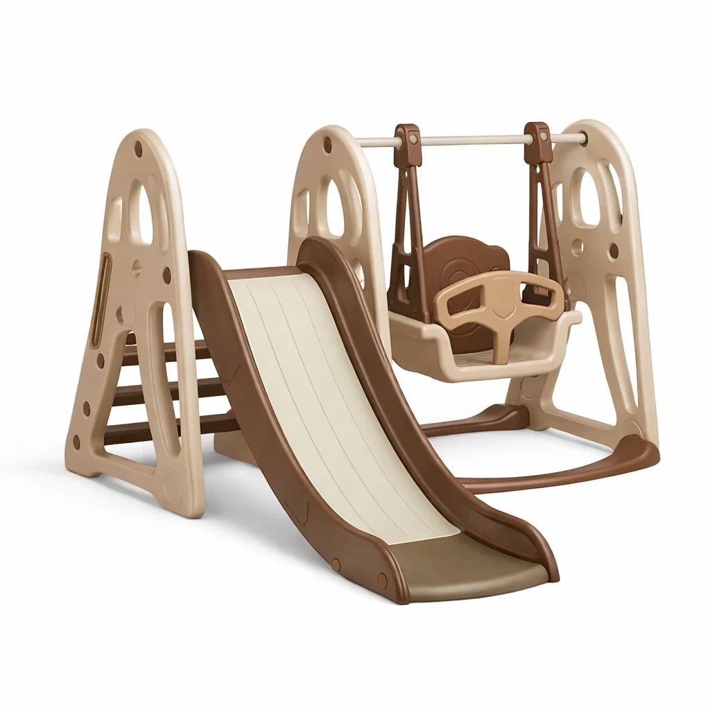 Attrezzatura da gioco per bambini in Plastica con Scivolo Altalena e Torre Beige e Grigio