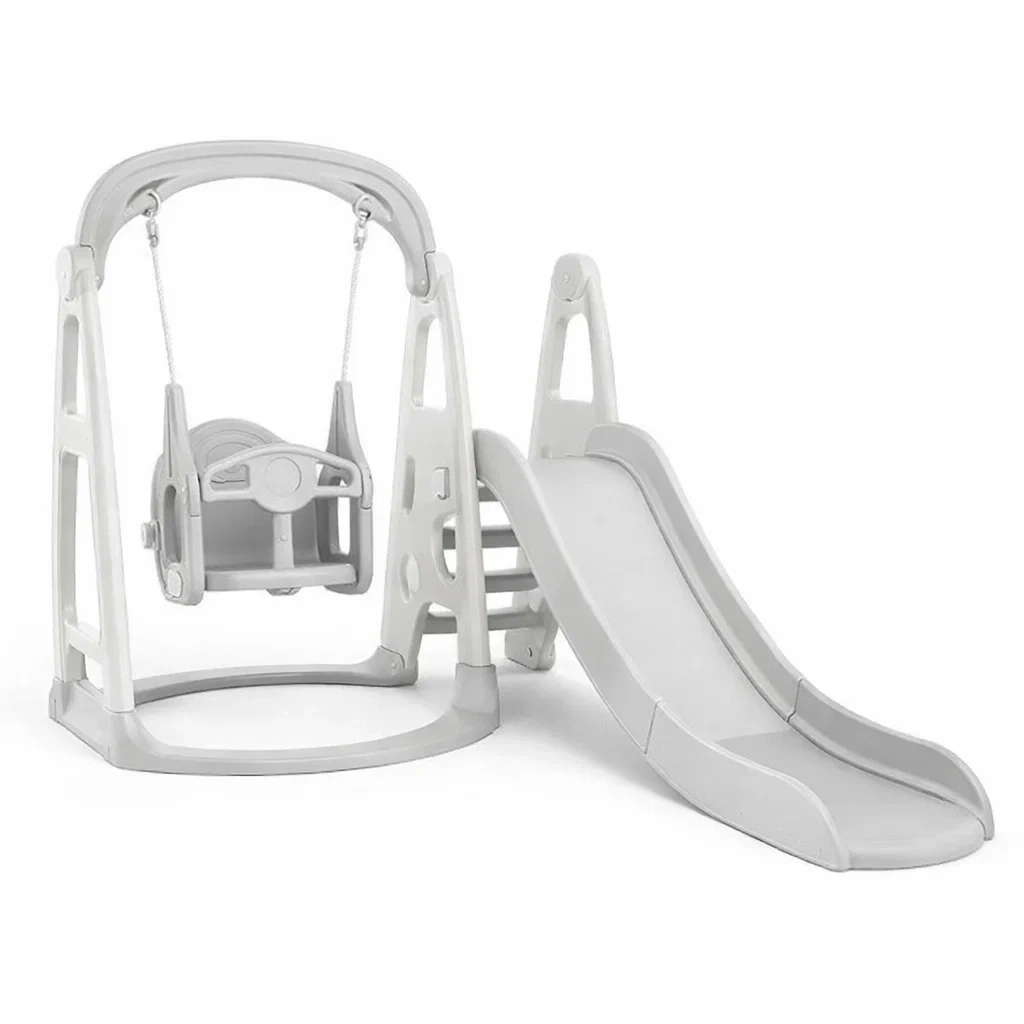 Questo set comprende uno scivolo e un'altalena realizzati in plastica di polietilene.