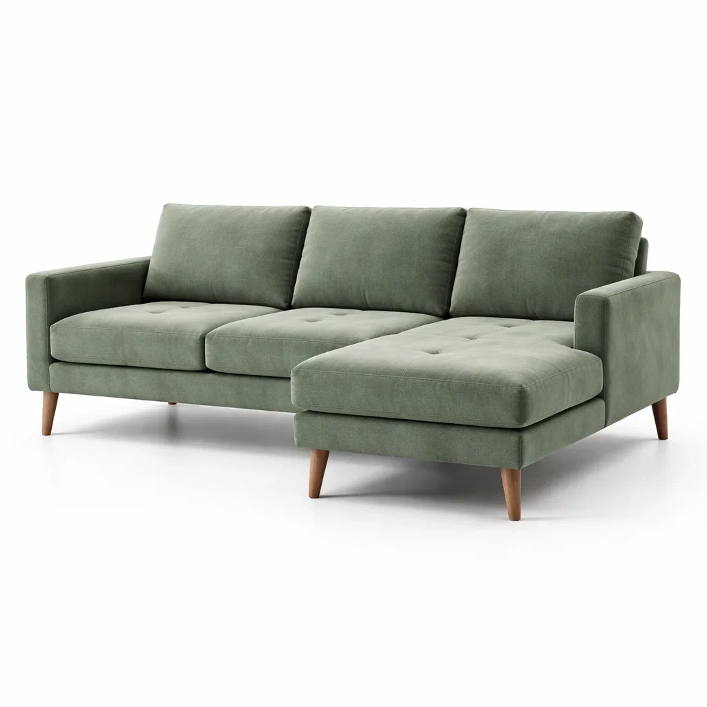 Divano ad Angolo in Tessuto Verde con Chaise Longue