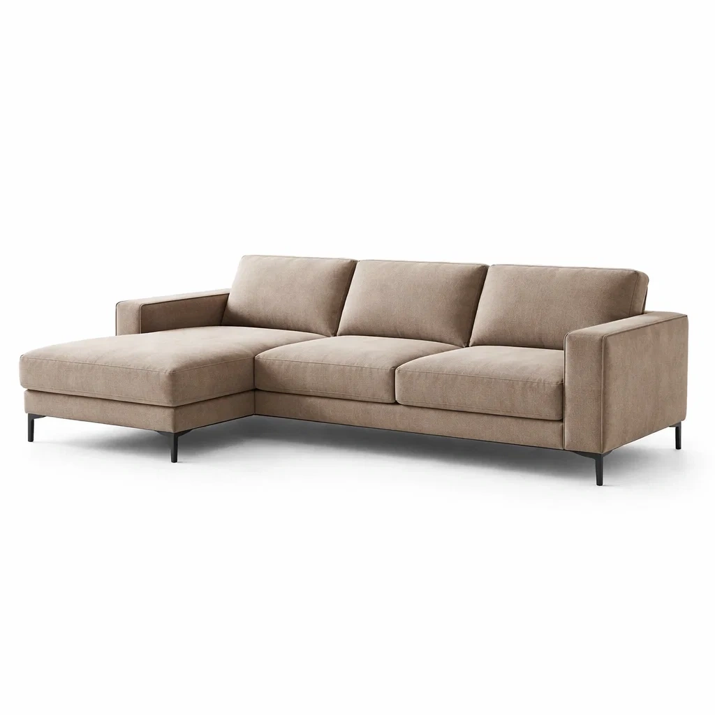 Materiale: Rivestimento in tessuto di poliestere, struttura in legno massello e compensato, gambe in metallo