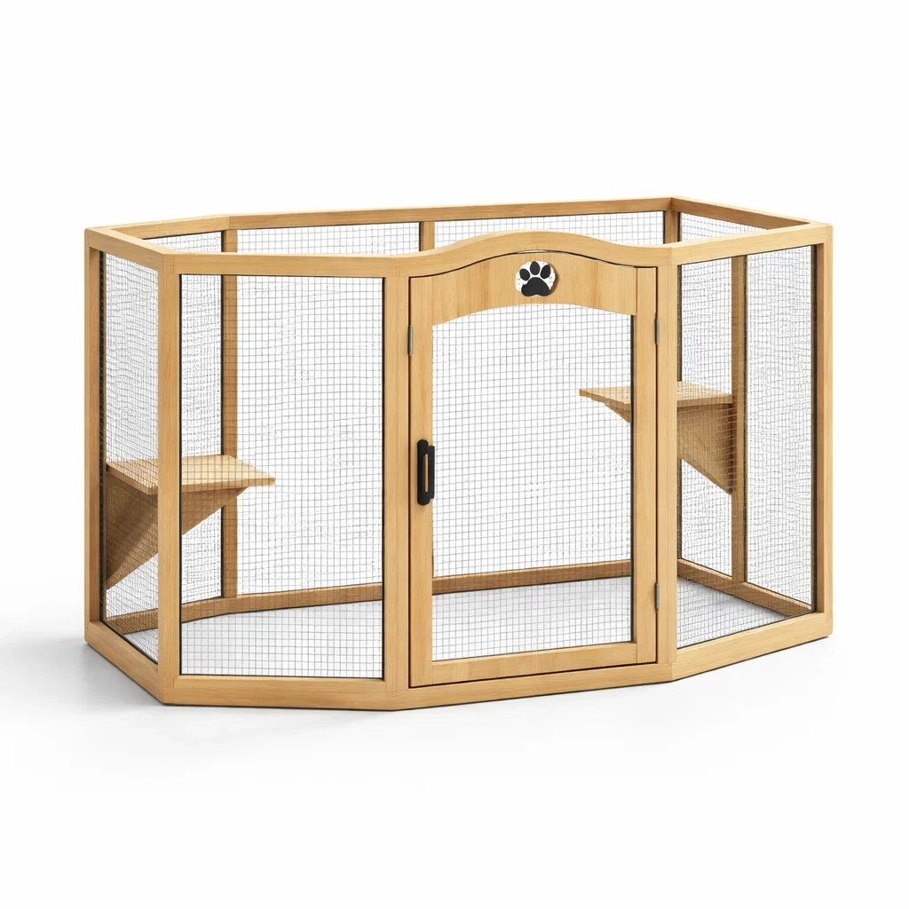 Recinto per animali domestici realizzato con un'elegante struttura in legno di pino e rivestimento in metallo zincato. Include una porta con chiusura per un facile accesso.