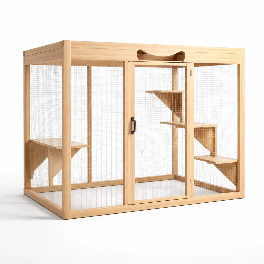 Struttura in legno di pino con rete metallica zincata.