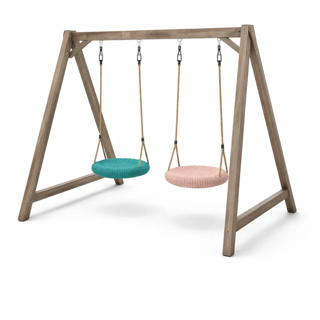 Set altalena in Legno con Seggiolini Circolari in Polietilene