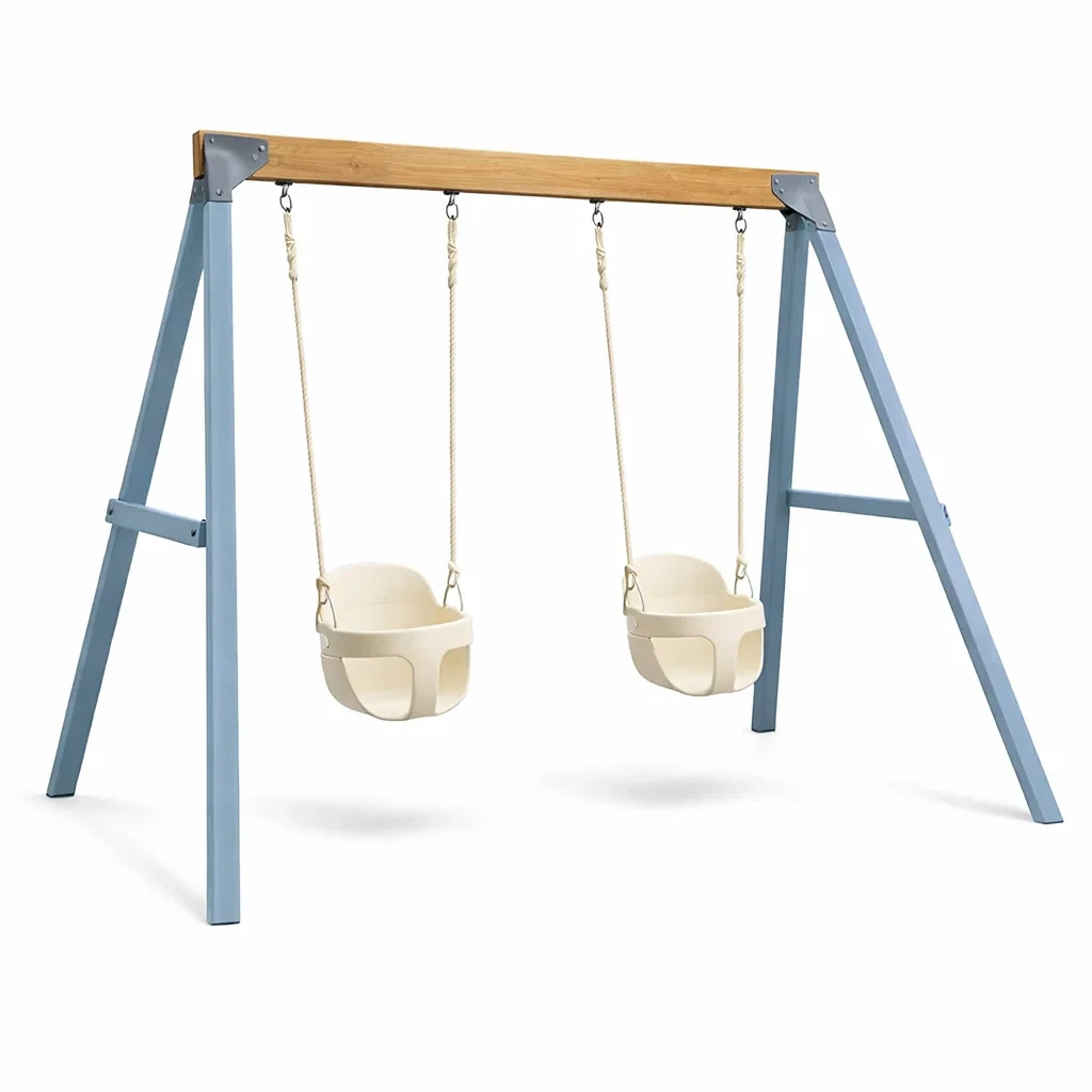 Materiale: Struttura in acciaio verniciato e legno, sedili in plastica polietilene